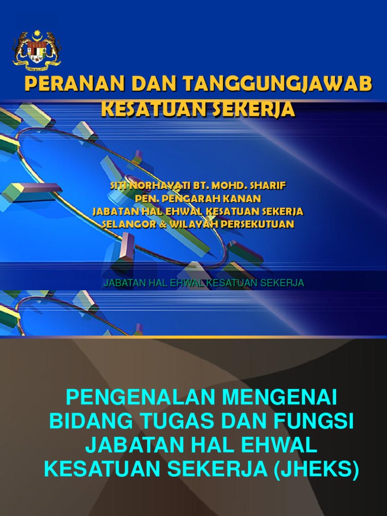 . Gunakan 1112 minit untuk setiap soalan 100 minit - Soalan esei. JABATAN PERHUBUNGAN PERUSAHAAN MALAYSIA ditubuhkan bertujuan untuk memupuk serta memelihara perhubungan yang positif dan harmoni diantara majikan dan pekerja serta kesatuan-kesatuan sekerja mereka bagi mewujudkan suasana Perhubungan Perusahaan yang aman dan tenteram dalam negara. Jabatan Perdana Menteri Tulisan Jawi.